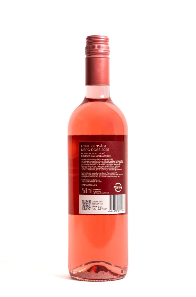 A Néró rosé bor egy magyar különlegesség, amelyet a Néró szőlőfajtából készítenek. A bor színe általában intenzív rózsaszín vagy lazacszín, amely a szőlő bogyójának magas antocián-tartalmából adódik. Ne feledd legjobb hűtve fogyasztani és kiválóan illik könnyű ételekhez, mint például saláták, halételek, grillezett csirke vagy zöldségek. Ezen kívül aperitifként is helytáll. Próbáld ki és hagyd, hogy minden fogást és alkalmat megkoronázzon főleg baráti összejövetelekhez, romantikus vacsorákhoz és családi ünnepségekhez is.